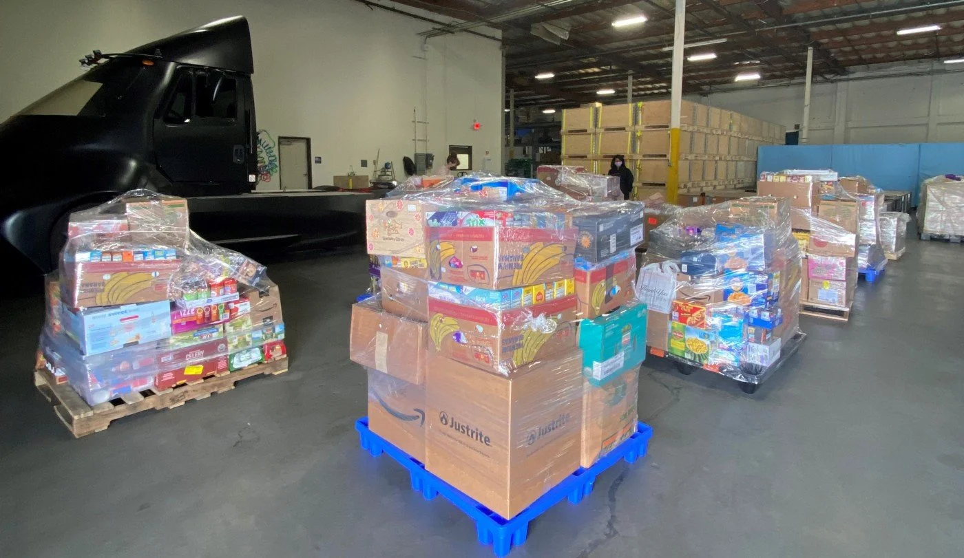 Xos staff brought in enough food drive donations for LA Mission to fill up twelve pallets.